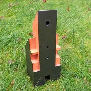 2022Steunbeerhuis, een eenvoudige maar spannende vorm van een huis met steunberen. Rode klei met zwarte olievlek-glazuur.