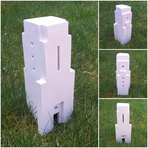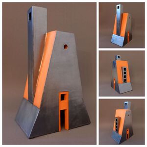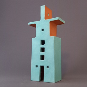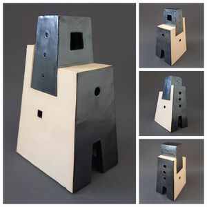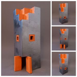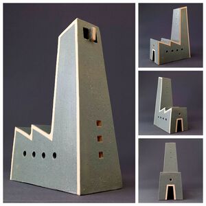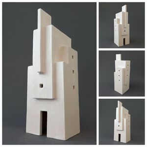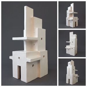 2021Geïnspireerd op een hoekgebouw van archtect Van Loghem is een torenachtig object gemaakt. Witte klei en een grijze "beton"-glazuur versterken het abstracte karakter.