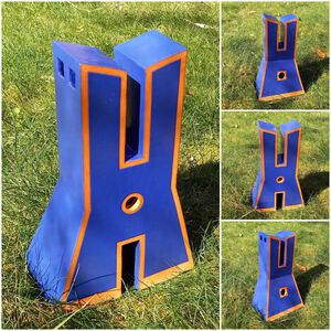 2022Geïnspireerd door de figuren in de Nazca-vlakte in Peru is deze manfiguur ontstaan. Gezet op een huisje dat aan de andere kant een strandhuisje vormt. Hoe tegengesteld kan je het hebben.