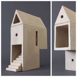 2022Work in Progresss. Bisquit gebakken "Balkon-Traphuis" in witte Raku-klei.