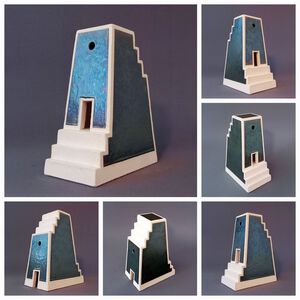 2022Geïnspireerd door de Maya-tempels is dit objectje ontstaan. In witte klei en met "zwart"-olievlekglazuur
