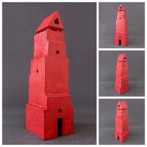 2022Toren, geïnspireerd op de toren op het Mercatorplein in Amsterdam. Rode klei en zwart effectglazuur.