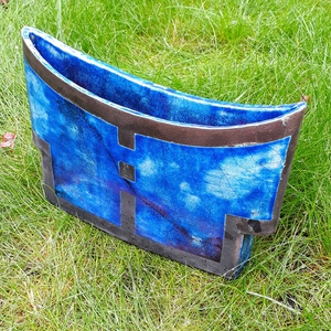 2020Een van de eerste raku-objecten. Boot-vaas met glazuur overgoten. Het groene glazuur heeft een koperzweem.