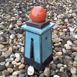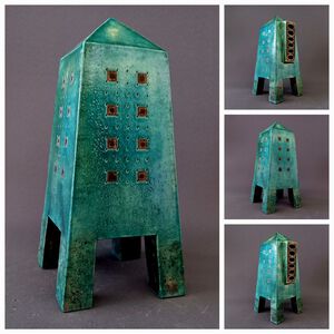 2021De "Pharos Alexandria" is van voor onze jaartelling en was de eerste vuurtoren. Inmiddels ingestort door een aardbeving, maar er zijn nog omschrijvingen, tekeningen en schetsen van. Geïnspireerd door dit bijzondere bouwwerk heb ik een raku-versie gemaakt.