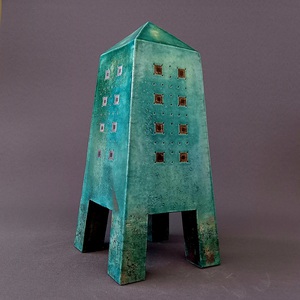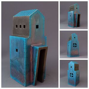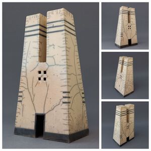 2021Een "stapelhuis" in raku-techniek, als onderdeel van een serie van drie. De andere twee zijn electrisch gestookt.